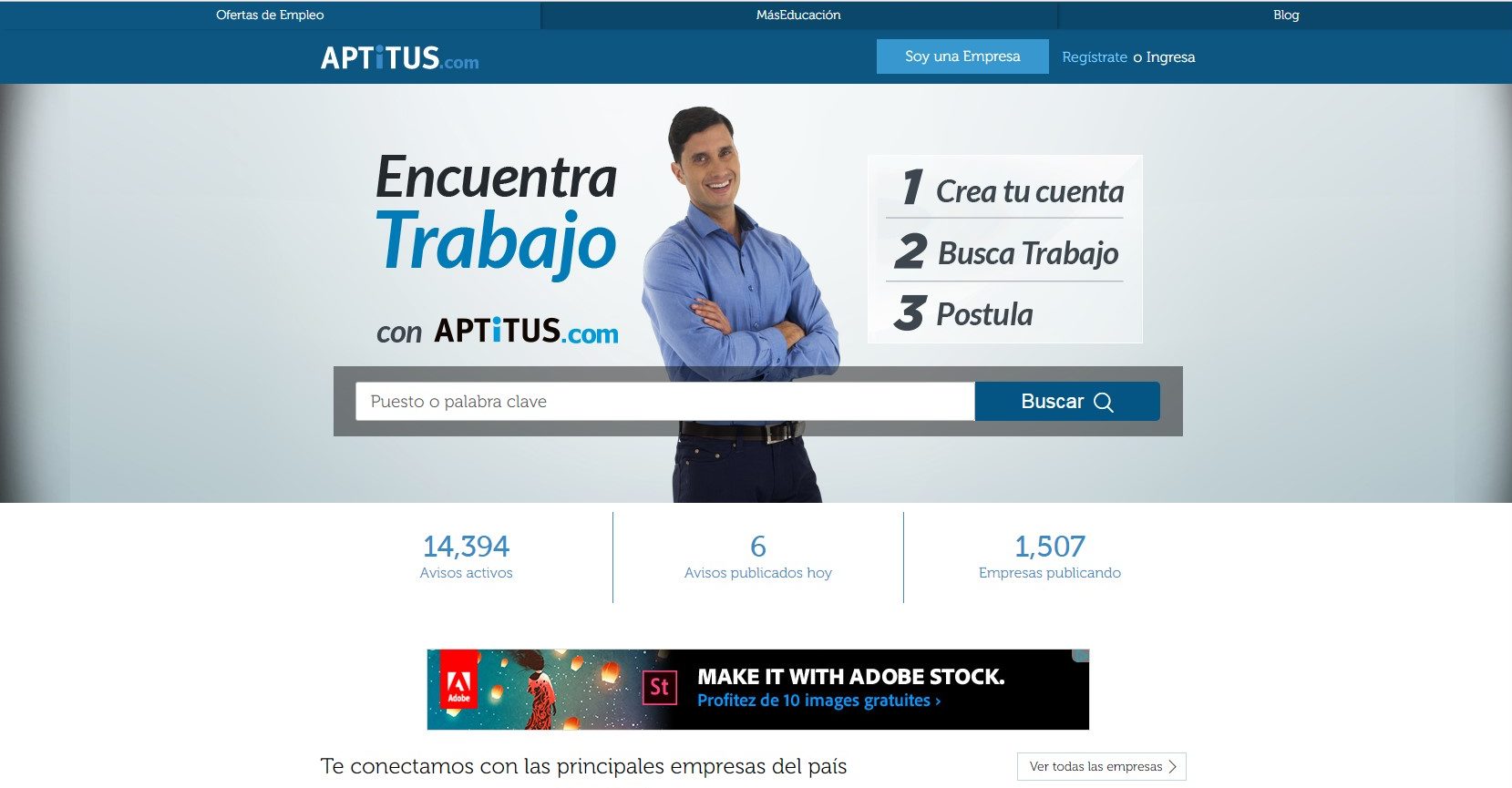 It is one of the largest job boards in Peru and one of the most visited too, with an average per month of 2.5 million visits over the last 6 months. Not only this but the Bumeran group has job boards in Ecuador and Colombia too, as well as nearly every other country in South America. The interface is comprehensive, attractive and clear, and the site is easy to use and quick. The job offers are updated regularly and come from a wide variety of job sectors, with most jobs coming from the sales and purchasing, and building industries. Bumeran also has a partner site, multitrabajos.com, which offers an easy-to-access CV database alongside the regular job board offer-posting and search functions.